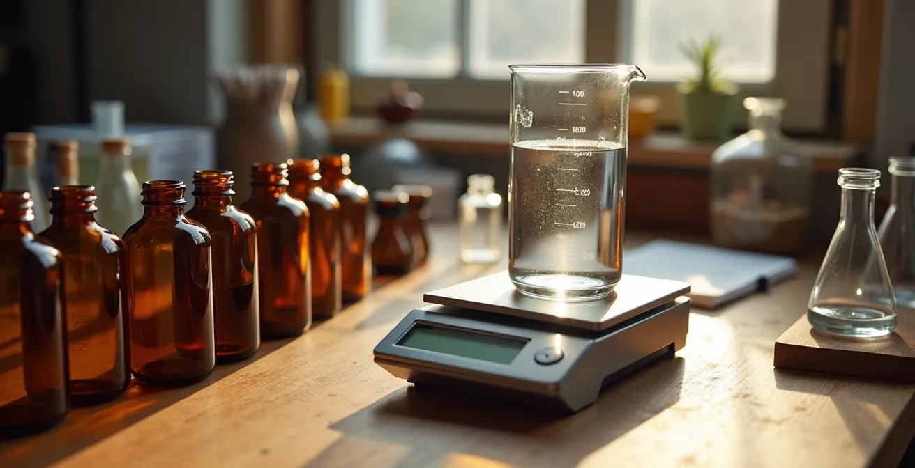 Der erste Schritt in die Welt der Geschmackskomposition ist die Anschaffung des richtigen Handwerkszeugs. Hier geht es nicht um möglichst viel, sondern um das Richtige. Während viele den Fokus auf die unmittelbare Kostenersparnis legen – eine aktuelle Marktanalyse bestätigt eine Kostenersparnis von bis zu 80 % –, sehen wir es als Investition in die Qualität und Reproduzierbarkeit Ihrer Kreationen. Sensorische Präzision beginnt mit der richtigen Ausrüstung. Vergessen Sie das ungenaue Mischen mit Spritzen und Milliliter-Angaben. Die Profis mischen nach Gewicht – das ist exakter, sauberer und unendlich besser reproduzierbar.